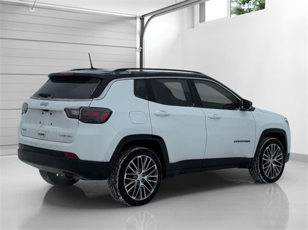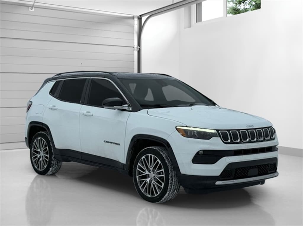 Certified. Bright White Clearcoat 2022 Jeep Compass Limited 9-Speed 948TE Automatic 2.4L I4 Compass Limited, 2.4L I4, 4WD, Bright White Clearcoat, Black Leather, 10.1" Touchscreen Display, 115V Auxiliary Power Outlet, 2nd Row Heated Seats, 2nd Row USB Type A/C Charge Only, 4G LTE Wi-Fi Hot Spot, Air Conditioning, Alexa Built-In, Automatic temperature control, Cluster 10.25" TFT Color Display, Connected Travel & Traffic Services, Disassociated Touchscreen Display, Driver Seat Memory, Elite Group, Foot Activated Open 'N Go Liftgate, For Details, Visit DriveUconnect.com, For More Info, Call 800-643-2112, Global Telematics Box Module (TBM), Gloss Black Door Cladding, Gloss Black Exterior Sill, Gloss Black Fascias, Gloss Black Wheel Flares, GPS Navigation, HD Radio, Heated front seats, Heated steering wheel, Integrated Voice Command w/Bluetooth, LED Low/Highbeam Projector Headlamps, No Satellite Coverage HI/AK/PR/VI/GU, ParkView Rear Back-Up Camera, Power 2-Way Passenger Lumbar Adjust, Power 8-Way Adjust Front Passenger Seat, Power driver seat, Power Liftgate, Premium Leather Trimmed Bucket Seats, Premium LED Fog Lamps, Premium Taillamps, Quick Order Package 2GG, Radio: Uconnect 5 Nav w/10.1" Display, Reversible Carpet/Vinyl Cargo Mat, SiriusXM Guardian - Included Trial (B), SiriusXM Radio Service, SiriusXM Satellite Radio, SiriusXM w/360L, Steering wheel mounted audio controls, Ventilated Front Seats, Wheels: 19" x 7.5" Painted Diamond Cut Aluminum.