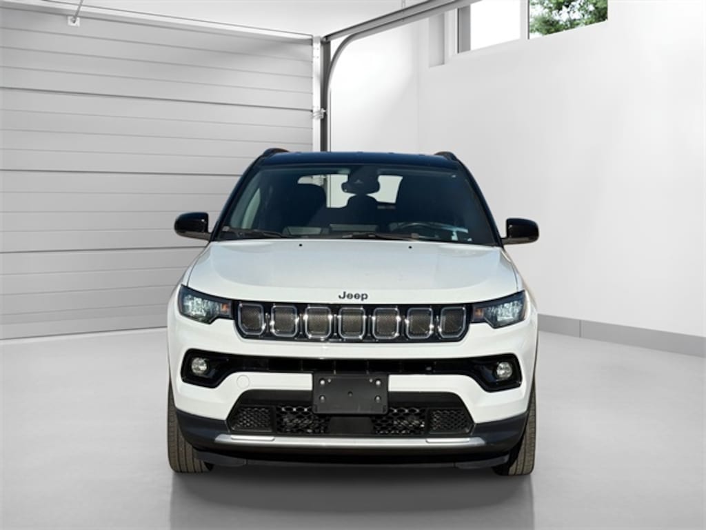Certified. Bright White Clearcoat 2022 Jeep Compass Limited 9-Speed 948TE Automatic 2.4L I4 Compass Limited, 2.4L I4, 4WD, Bright White Clearcoat, Black Leather, 10.1" Touchscreen Display, Air Conditioning, Automatic temperature control, Heated front seats, Heated steering wheel, ParkView Rear Back-Up Camera, Quick Order Package 2GG, Radio: Uconnect 5 w/10.1" Display, Wheels: 18" x 7" Painted Diamond Cut Aluminum.