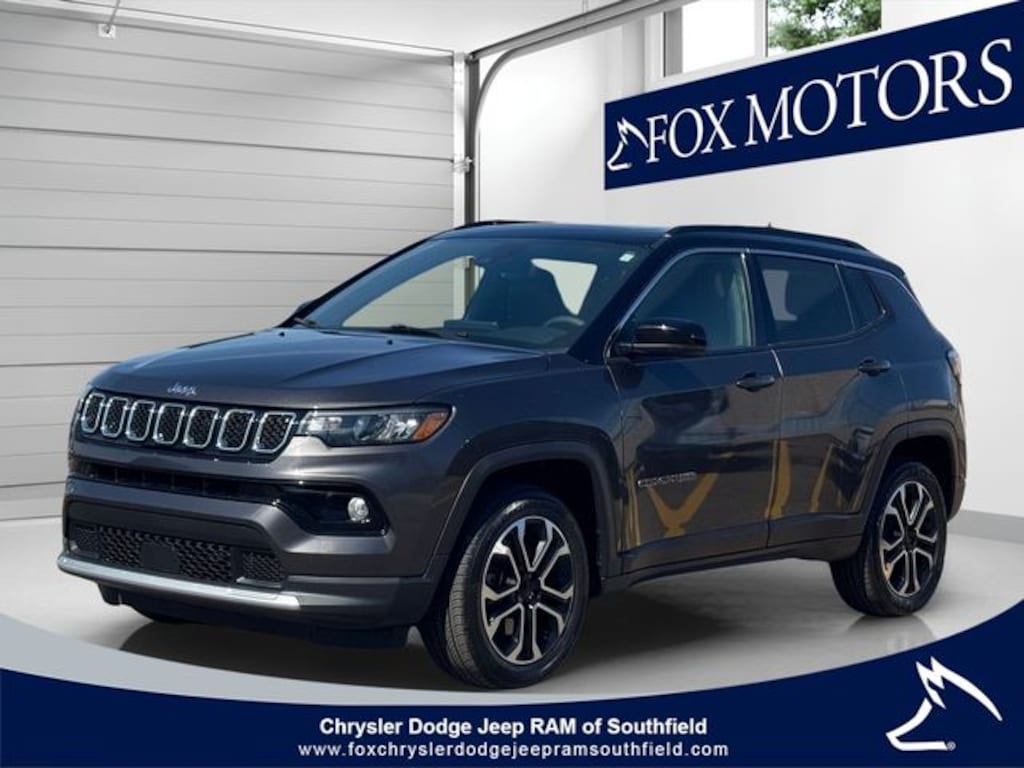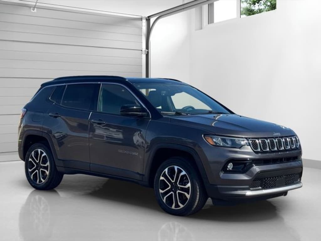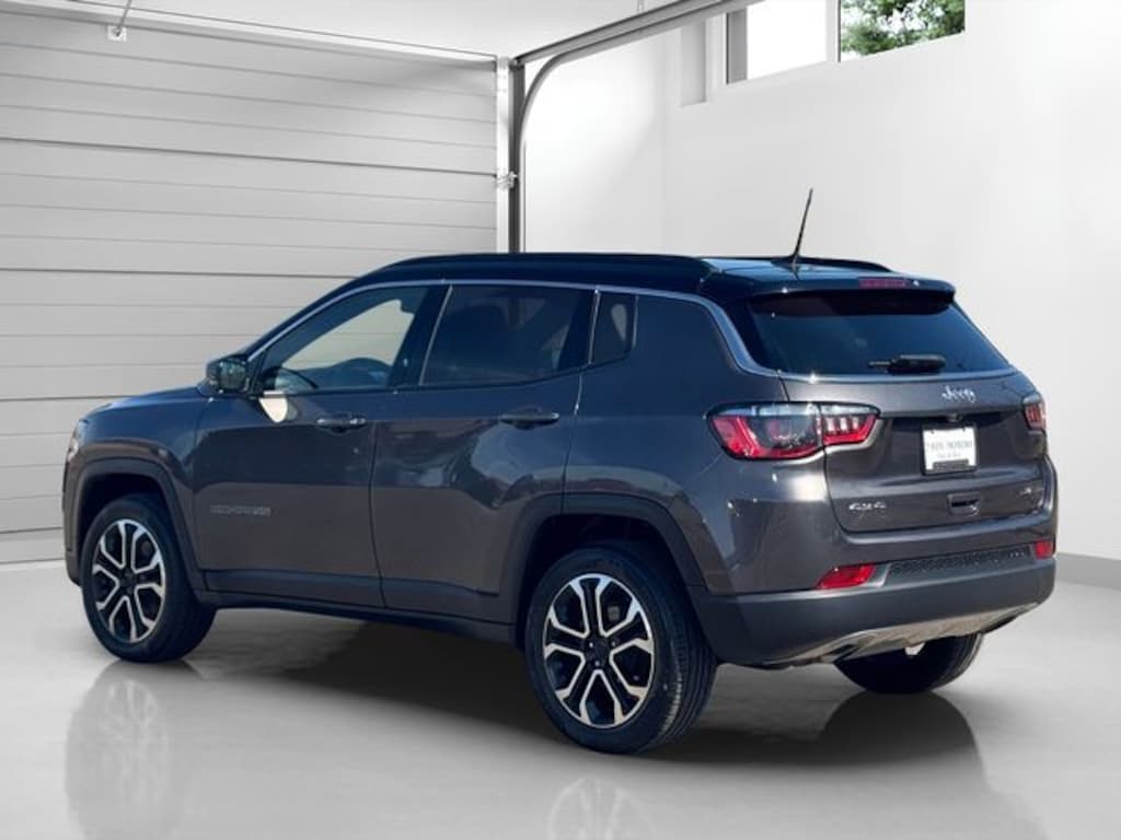 Certified. Granite Crystal Metallic Clearcoat 2023 Jeep Compass Limited 8-Speed Automatic 2.0L I4 DOHC Compass Limited, 2.0L I4 DOHC, 4WD, Granite Crystal Metallic Clearcoat, Gray Leather, 10.1" Touchscreen Display, Air Conditioning, Automatic temperature control, Heated front seats, Heated steering wheel, ParkView Rear Back-Up Camera, Power driver seat, Power Front/Fixed Rear Full Sunroof, Premium Alpine Speaker System, Quick Order Package 29G, Radio: Uconnect 5 w/10.1" Display, Steering wheel mounted audio controls, Sun and Sound Group (DISC), Wheels: 18" x 7" Painted Diamond Cut Aluminum.